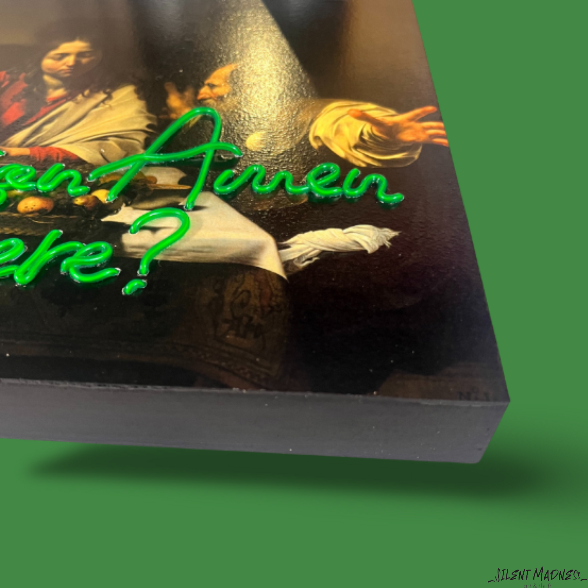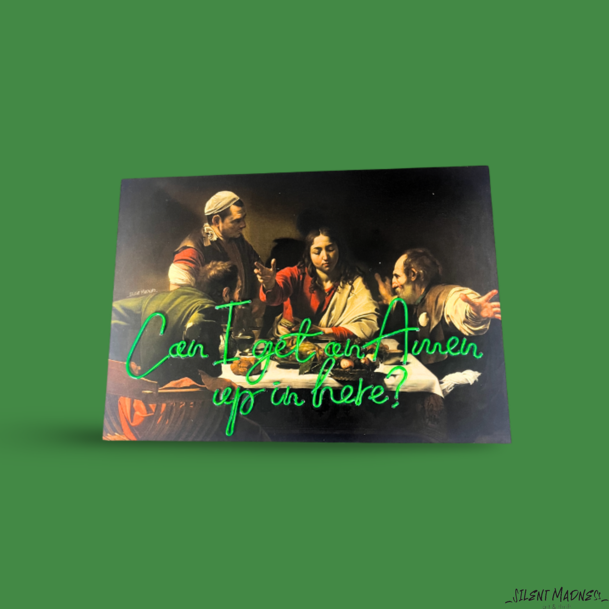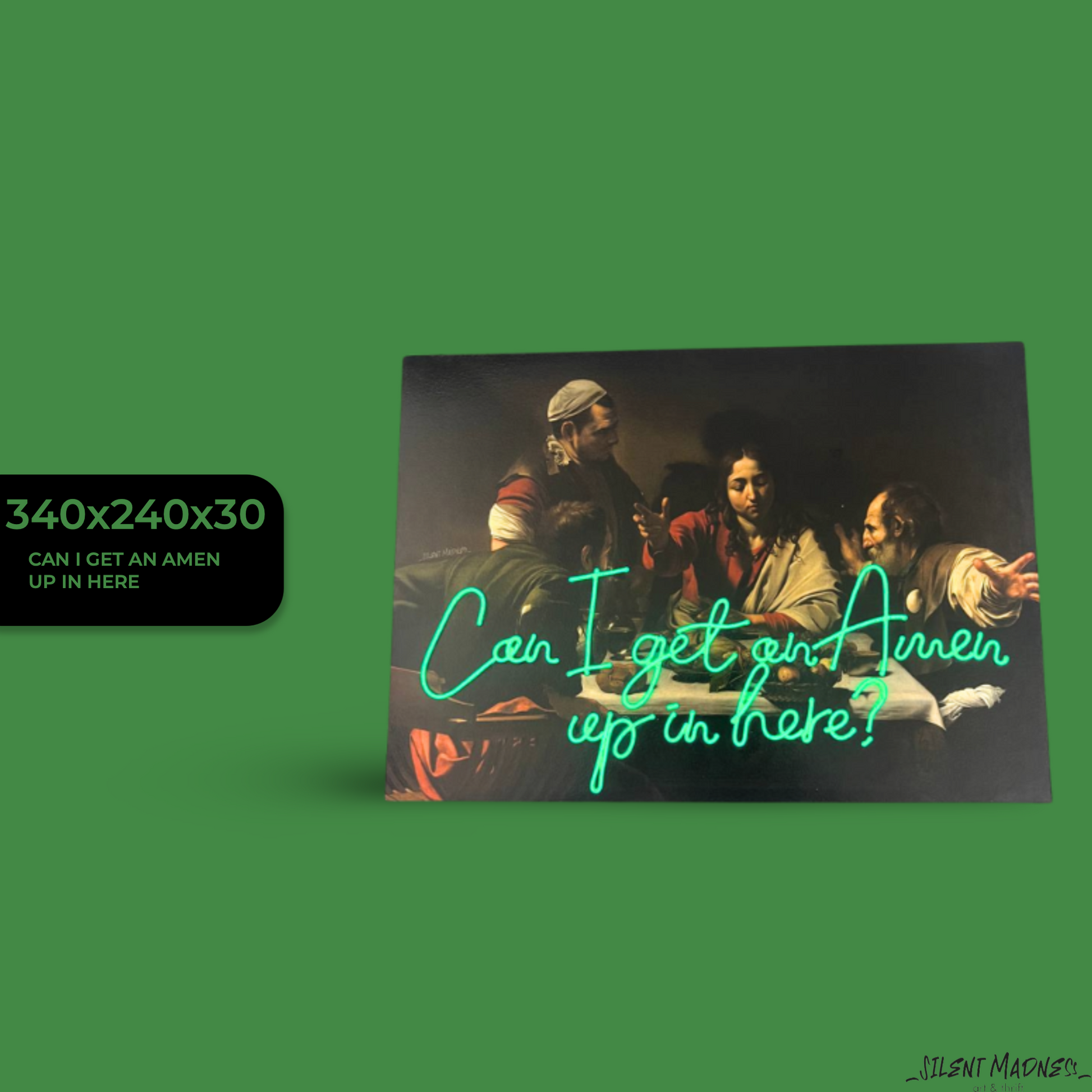 Bring some heavenly humor into your space with 'Can I get an Amen up in here?' This electrifying neon canvas offers a witty twist on traditional blessings, blending divine humor with modern flair. Hang it in your sacred space or meditation corner for a touch of spiritual whimsy and a reminder that even prayers can come with a side of laughter.
