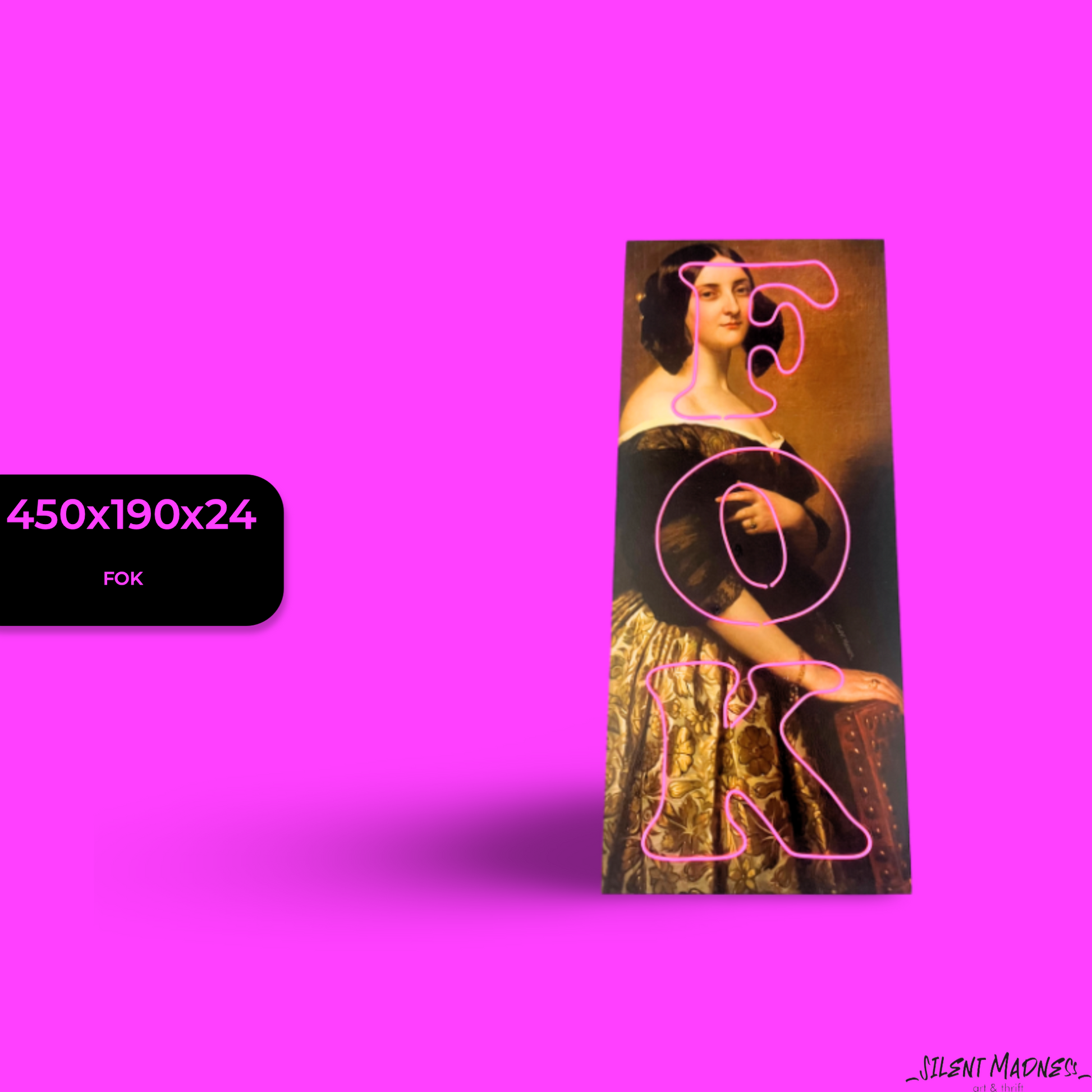 Make a bold statement with 'Fok,' a neon canvas that's as straightforward as it gets. This electrifying artwork captures attention with its minimalist yet impactful design, serving as a cheeky expression of frustration or defiance. Hang it in your space as a conversation starter or a nod to your irreverent sense of humor. Because sometimes, a simple word says it all.