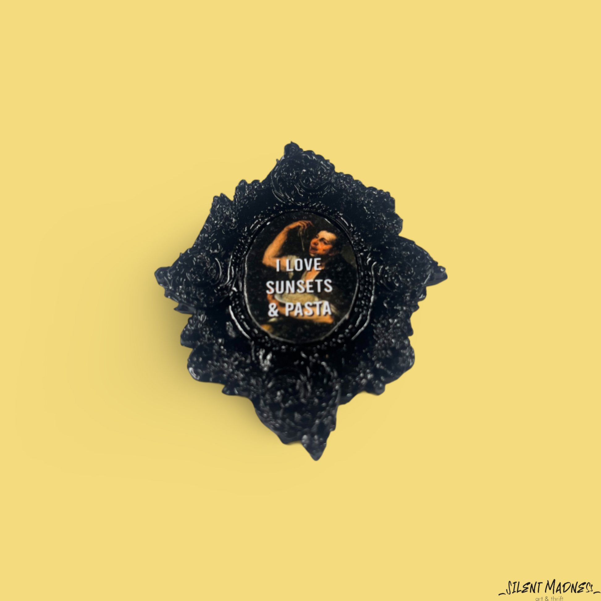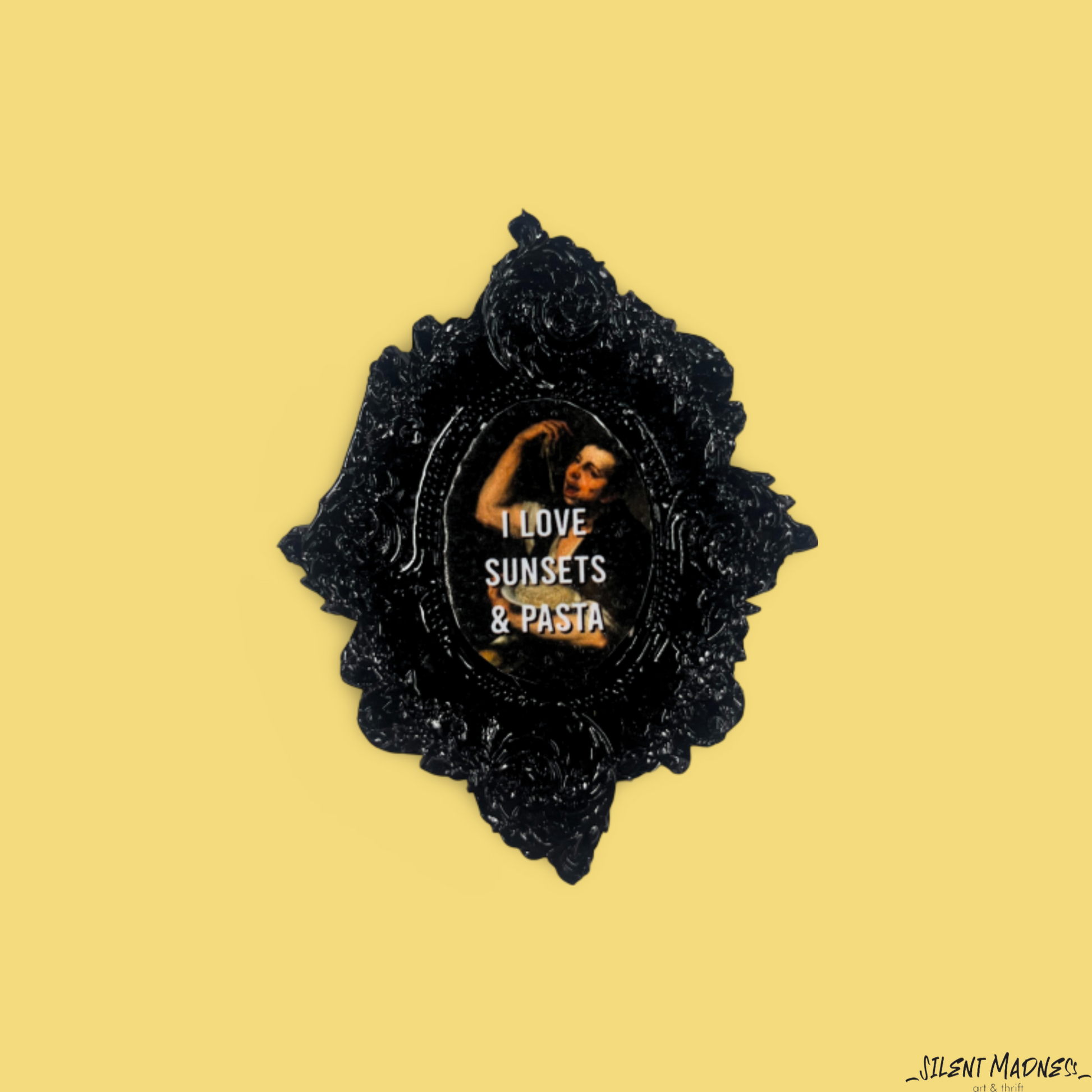 Celebrate life's simple pleasures with this magnet that combines appreciation for nature's beauty with a love for carbs. It's a whimsical ode to the joy of watching sunsets and indulging in comforting pasta dishes.