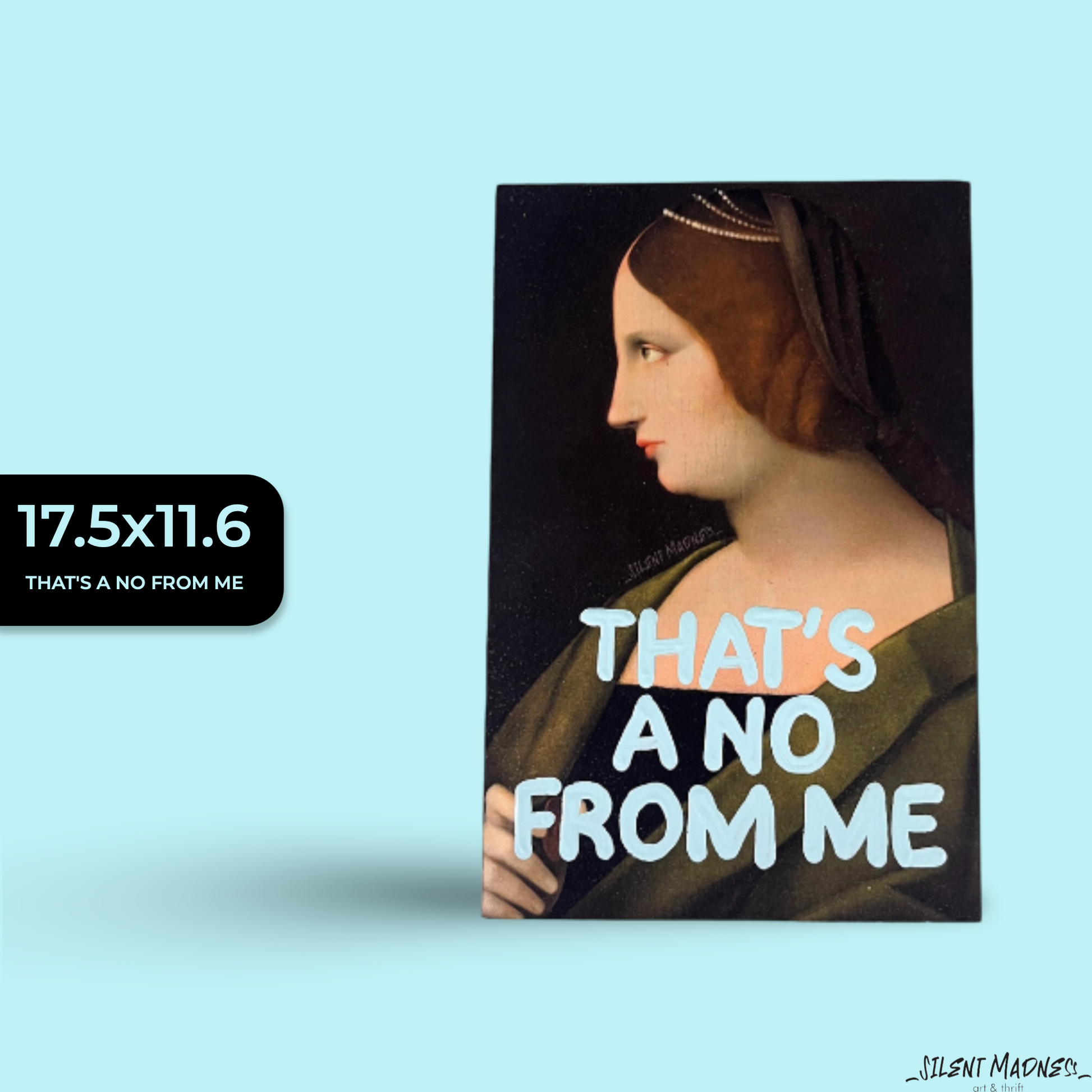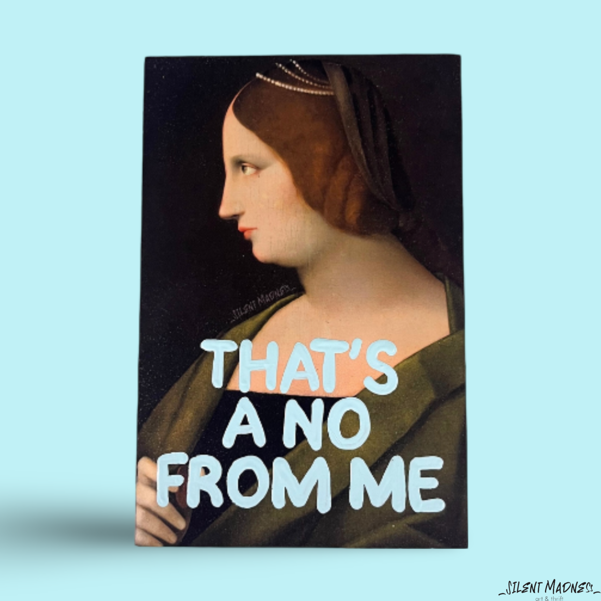 Assert your boundaries with charm and humor with this canvas that delivers a firm yet whimsical response. It's a lighthearted way to communicate preferences and decisions, complete with a touch of playful rejection.